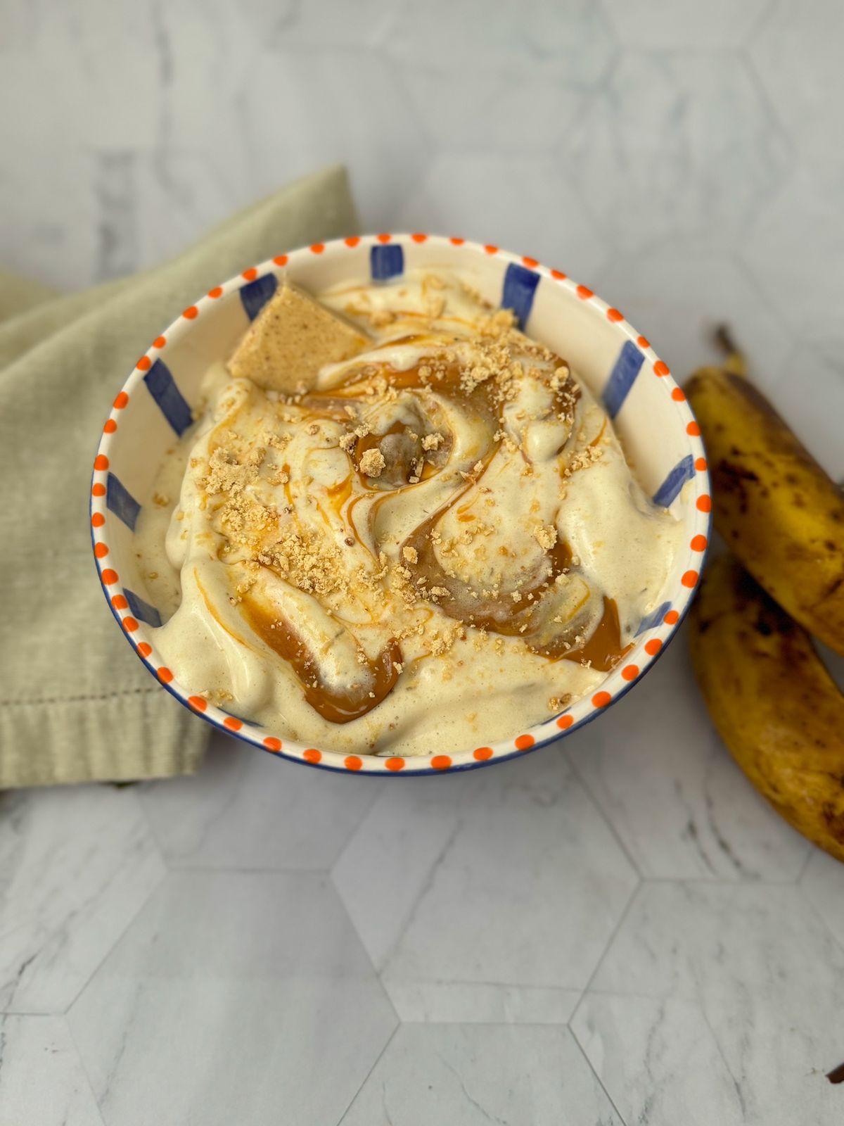 Ideal é comer na hora esse sorvete com doce de leite e paçoquinha por cima!