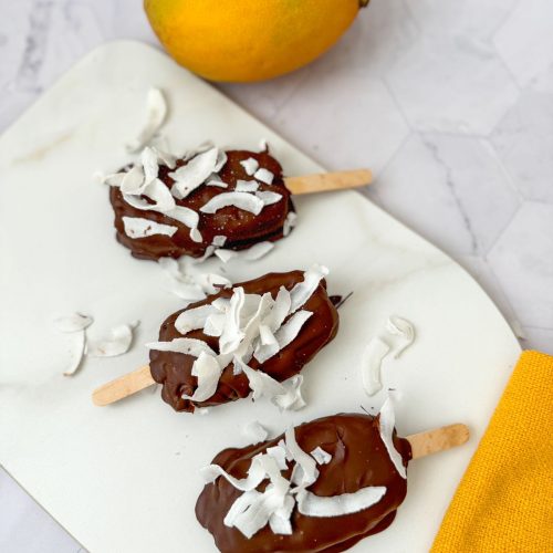 Derreta o chocolate e banhe os picolés, adicione o coco por cima!